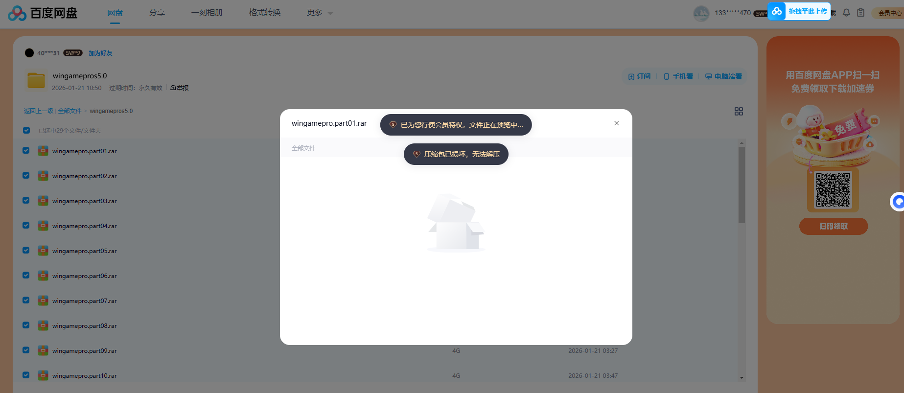 我也没有 我压缩完 就告诉我压缩包损坏 网盘云解压 看包里就没有